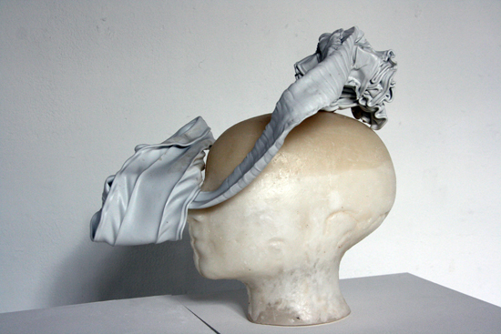 ‘In spite of the visual opposition between the two artists on show, the identically shaped wax heads that Lyons adorns with contorted shapes and visually unnerving materials such as human hair are aligned with Maclean’s work through their conception. Coming from conflicting material processes both sets of work are united by their fundamental aim to distort our perception through mutation and stunted growth.’