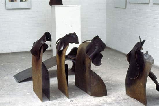 The sculptural works were constructed in painted ceramic and sheet steel. They reveal the formal influences which were prevalent in the sculpture school in Newcastle at the time, the importance of figuration as a theme and the beginnings of an installational approach.